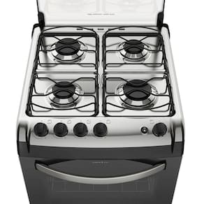 Seu design moderno com menos recortes facilita a limpeza, além disso, conta com forno de 59 litros com esmalte Easy Clean que evita a absorção de gordura e válvula de segurança que corta o gás do forno em caso de vazamento, desenvolvido especialmente para as crianças e idosos.