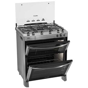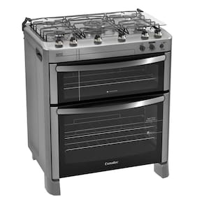 Conta com forno duplo, sendo um convencional elétrico com 95 litros e duas prateleiras. Além disso, possui timer mecânico, porta do forno com visão ampla e um dos queimadores tripla chama de alto desempenho para acelerar o tempo de cozimento.