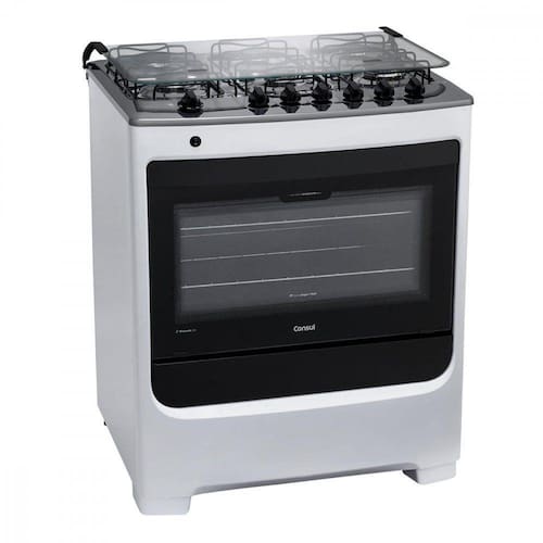 Você merece o melhor do mercado O fogão da Consul é feito de aço e, na cor branca, possui detalhes em vidro e plástico. Ele tem 6 bocas com acendimento automático, sendo uma delas super-chama. Além disso, possui um forno grande com capacidade de 96 L e com duas prateleiras. Possui eficiência energética classe A e potência de 25 watts. Agora suas receitas não terão erro!