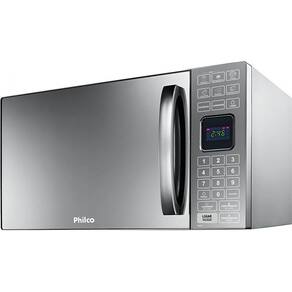 Marca: Philco Voltagem: 110V Capacidade (litros): 25L Consumo (kw/h): 1,4kWh Potência (w): 1400W Cor: Prata Timer: Sim Display digital: Sim Relógio: Sim Luz interna: Sim Termostato: Não Autolimpante: Não Prateleiras: Não Prato giratório: Sim Teclas pré-programadas Sim Trava de segurança: Sim Dupla emissão de ondas: Não Temporizador: Sim Grill: Não Conteúdo da embalagem: 1 Micro-ondas, 1 Prato e Suporte Giratório, Certificado de Garantia, Mini folder e Manual de Instruções.