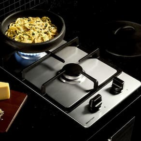O cooktop a gás 2 bocas Brastemp com trempe de ferro fundido traz modernidade e robustez para sua cozinha graças ao seu acabamento em aço inox.