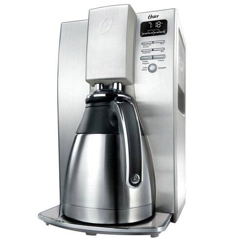Cafeteira térmica programável Gourmet Collection da Oster. Sistema de preparo rápido e eficaz que extrai o máximo de sabor e aroma do café na temperatura ideal, desligamento automático após o término do preparo e painel digital com indicador de tempo de preparo e controles programáveis: relógio, ciclo de limpeza, módulo para economizar energia. Além disso, a jarra possui parede dupla de aço inoxidável que mantém o café quente e o sabor de recém preparado por mais tempo. Tem também sistema hermético que permite coar o café sem contato com o ar e inclui um filtro permanente lavável.