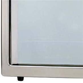 - Corpo externo em aço inoxidável - Corpo interno com revestimento autolimpante - Frontal em aço inoxidável 304 polido - Perfil de silicone para vedação da porta - Termostato de precisão (50ºC a 300ºC) - 4 Resistências blindadas (2 sup.1200"We 2 inf.1200W) - 2 Chaves de controle da temperatura (mínimo/médio/máximo) - Visor iluminado de temperatura - Porta removível de vidro espelhado cristal temperado - Isolamento térmico total com lã de vidro - Lâmpada interna com vidro protetor - 1 Prateleira removível em 3 posições - Instalação elétrica certificada pelo INMETRO <strong>Medida Interna:</strong> - AxLxP: 29,5x36x44cmForno autolimpante
