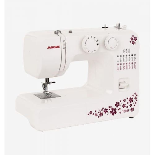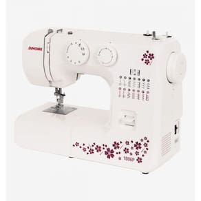 A máquina de costura Janome modelo 1006P possui 12 tipos de pontos e é indicada para a costura básica do dia a dia, como confecção de roupas, barras de calças, capa de almofada, itens decorativos para casa, fantasias e artesanato em tecido.