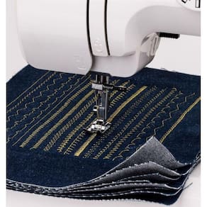 Com estrutura interna em metal reforçado, a máquina permite costurar diversos tipos de tecidos, desde tecidos leves até tecidos grossos como jeans e brim.