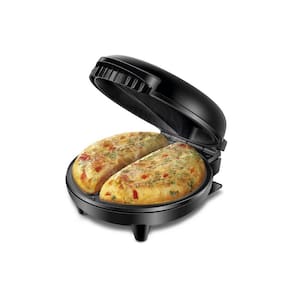 Omeleteira Elétrica Mondial Easy Omelet com revestimento antiaderente, alça fria, lâmpadas piloto e controle de temperatura automático. Prepara 2 omeletes, crepiocas, calzones, tortas e ovos poché.Base antiderrapante