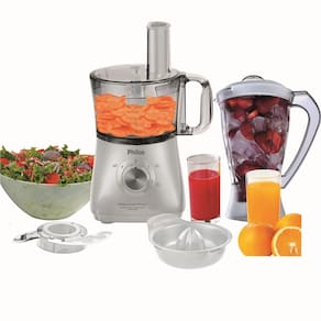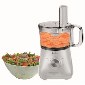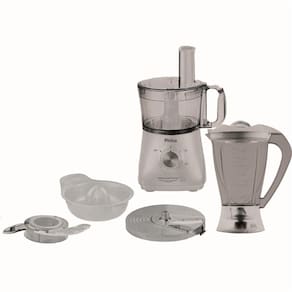 - Capacidade da Jarra do processador 1,2L - Capacidade do copo do liquidificador 1,5L - 02 velocidades + pulsar - Microstore: todos os acessórios podem ser guardados dentro da jarra-menos o espremedor - Possui acessórios que executam múltiplas funções - Design vertical: ocupa menos espaço na cozinha - Todos os acessórios podem ser levados a uma máquina lava-louças - Pés antiderrapantes - Trava de segurança - Funções: processar, ralar, cortar, misturar, fatiar, espremer, picar, liquidificarFunções