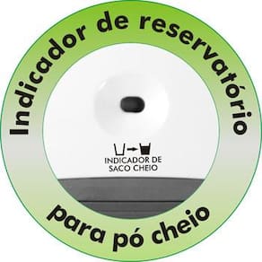 Saco para pó removível e lavávelIndicador de coletor cheio