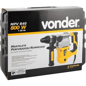 O Martelete Perfurador e rompedor MPV840 da Vonder é indicado para perfurar e romper concreto e alvenaria. Utilizando haste adaptadora tipo SDS Plus e mandril adequado, pode perfurar madeira, metal, plástico, entre outros. Não acompanha haste e mandril.
