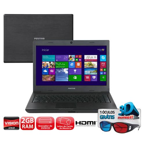Notebook Positivo 1495m com AMD Vision C-60, 2GB, 320GB, Gravador de DVD, Leitor de Cartões, HDMI, Wireless, Webcam, LED 14" e Windows 8