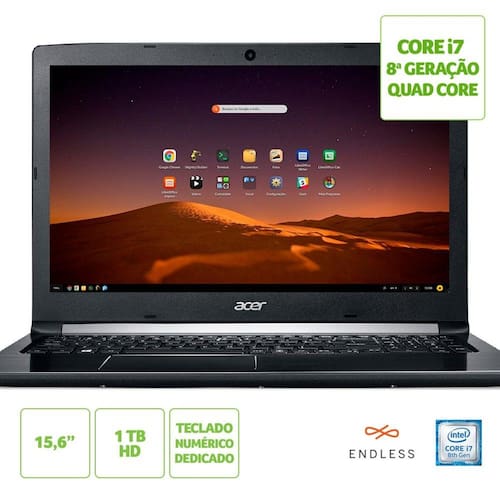 Notebook Acer Aspire 5 A515-51-C0ZG Intel® Core i7-8550U 8ªGeração 8GB RAM HD de 1TB 15.6" HD Linux (ENDLESS OS)