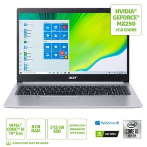 Notebooks Acer Aspire 5 A515-54G-59C0 Intel Core I5 8GB 512GB SSD NVIDIA MX250 15,6` Windows 10