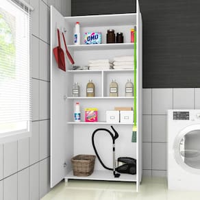 Armários multiuso são funcionais e podem ser utilizados na dispensa para guardar alimentos, na lavanderia para produtos de limpeza ou até mesmo para sapatos. São extremamente versáteis e lhe ajudam a manter a organização do ambiente. Possui três ganchos de aço no interior do móvel, para que tenha a possibilidade de pendurar objetos de sua escolha. Fabricado em MDP, conta com dobradiças metálicas e acabamento Finish Foil Acetinado, proporcionando ainda mais durabilidade ao produto. A limpeza desse móvel deve ser feita com pano macio e seco ou levemente umedecido com água e sabão neutro. Não devem ser utilizados abrasivos como palha de aço e objetos cortantes.