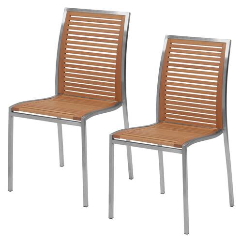 Kit com 2 Cadeiras Fixa Tramontina Empilhável - Madeira/Inox