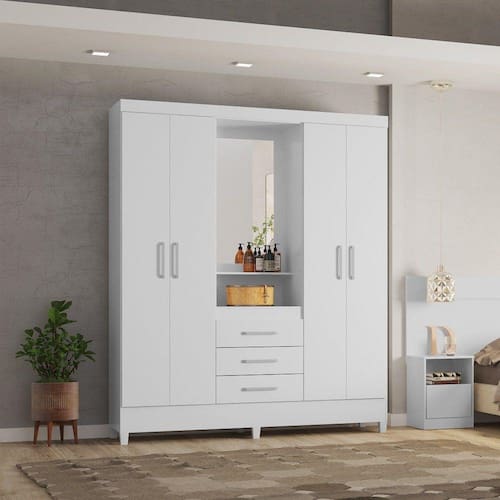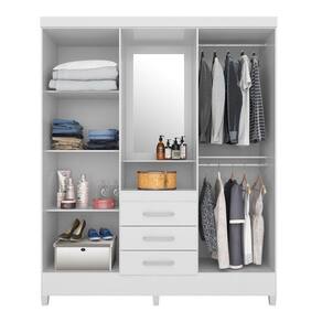 Características do produto: Material MDP Gavetas: 03 Portas: 04 Possui espelho Cabideiro metálico Corrediças nas gavetas Espelho: Sim Nicho central Revestimento da embalagem: plástico termo-encolhível
