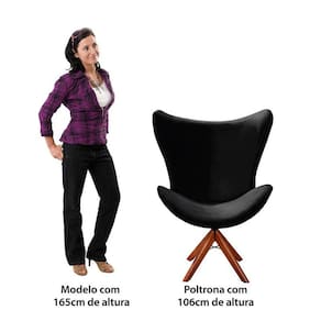 Poltrona Decorativa Alice Base Giratória Madeira Preto - Bella Decor