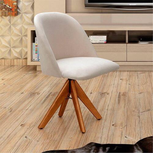 Poltrona Decorativa Gaia Base Giratória Madeira - Bella Decor - BEGE