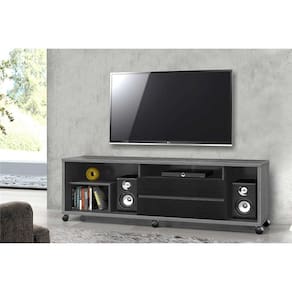 Estruturado em MDP/MDF de alta qualidade, possui gavetas mais espaçosas, revestimento em pintura UV que ressalta a beleza do móvel, pés com rodízios para fácil locomoção e limpeza, prateleiras para melhor divisão, amplo espaço para eletrônicos e peças decorativas, além de excelente durabilidade.
