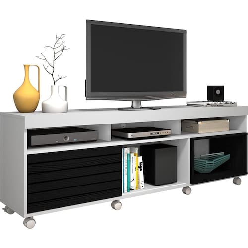 Rack Olivar Móveis Veneto com Rodízios para TV de até 46” - Branco / Preto