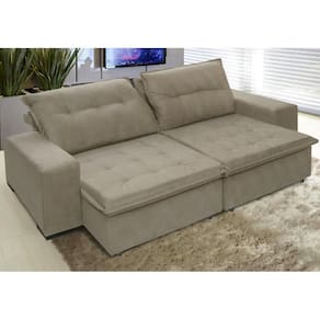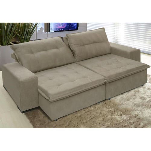 -Encosto Reclinável com 5 posições, almofadas fixas compostas de 70% fibra siliconada e 30% flocos de espuma. Percintas elásticas e manta siliconada para maior conforto.