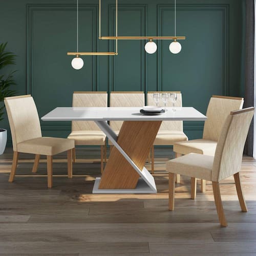 +O+conjunto+de+Sala+de+Jantar+Helena+possui+um+design+inovador%2C+o+qual+promete+ser+um+destaque+no+seu+lar.+A+mesa+possui+beleza+e+originalidade+inimagin%E1veis%2C+possui+medidas+de+800+mm+de+altura%2C+1.600+mm+de+largura+e+900+mm+de+profundidade%2C+possui+ainda+tampo+de+25+mm+com+pintura+lacaborda+e+vidro+de+4+mm+que+aumenta+a+durabilidade+do+produto.+O+Kit+de+06+cadeiras+que+comp%F5em+o+conjunto+possui+estrutura+em+MDF+de+25+mm%2C+com+medidas+de+950+mm+de+altura%2C+420+mm+de+largura+e+535mm+de+profundidade.+Este+produto+tem+tudo+para+tornar+o+ambiente+da+sua+casa+ainda+mais+completo. Medida da Mesa (A x L x P): 80cm x 160cm x 90cm Peso da Mesa: 68 kg Mesa suporta até: 15 kg Acabamento da Cadeira/Banco: Pintura Texturizada Acabamento da Mesa: Pintura Texturizada Almofada do assento: Fixa Cadeira/Banco estofada: Sim Cadeira/Banco suporta até: 120 kg calculo: unidade Complexidade da Montagem: Alta: deve ser montado por um montador especializado Cr: Nature/Off White/Linho Cr do Produto: Nature/Off White/Linho Enchimento do Assento: Espuma D-23 Escala de Brilho: Fosco Espessura do Tampo: 25 mm Espessura do Vidro: 4 mm Estrutura do Assento: MDP/MDF Formato: Retangular Informações Complementares: Espessura total do Tampo é 29mm, sendo composto de 25mm MDF e 4mm de Vidro. Itens Inclusos: 1 Mesa, 6 Cadeiras e Manual de Montagem. Linha ou Coleção: Helena Manual de Montagem e Instalação: https://cdn2.madeiramadeira.com.br/atributo/m-veis-henn/529684-se06-conjunto-sala-de-jantar-6-cadeiras-helena.pdf Material da Base da Mesa: MDP Material da Estrutura da Cadeira: MDF Material do Tampo: Vidro/MDF Medida da Cadeira/Banco (A x L x P): 95cm x 44cm x 57,5cm Medida do Tampo (L x C x E): 90cm x 160cm x 2,9cm Necessita Montagem: Sim Origem do Produto: Nacional Peso da Cadeira/Banco: 7,5 kg Possui Apoio Para os Pés: Não Quantidade de Lugares: 06 Recomendações de Uso, Manutenção e Limpeza: Para limpeza de seu móvel, use uma flanela seca ou umedecida. Não utilize produtos químicos que possam danificar o produto. Revestimento da Cadeira/Banco: Suede Sistema de Montagem: Parafusos e Cavilhas status-cadastro: Aprovado Tamanho: Vidro Temperado: Não
