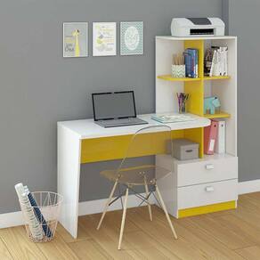 Moderna, ela conta com espaço para acomodar o notebook, além de 2 gavetas para guardar os seus pertences e prateleiras que servem para deixar os livros e cadernos sempre por perto.