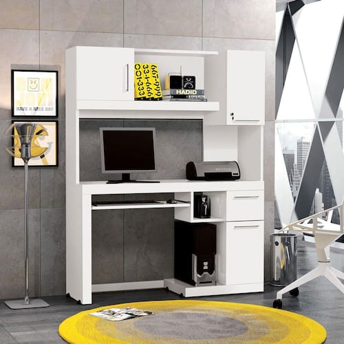 O modelo com espaço ideal para colocar seu notebook ou computador e prateleiras para você acomodar seus livros, revistas e outros papéis. Demais, né? :)