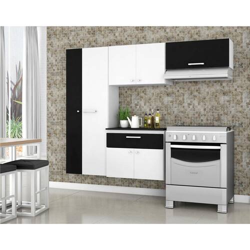 Cozinha Bartira Pérola com 7 Portas e 1 Gaveta - Branco/Preto