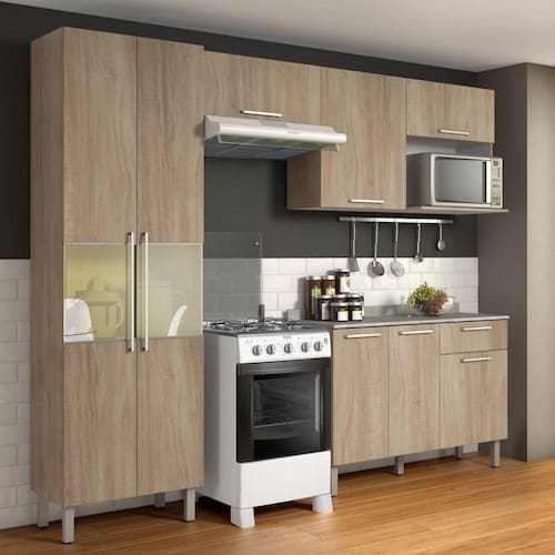 Cozinha Compacta 4 Peças com Balcão e Paneleiro Itatiaia Star Aveiro Oak - BEGE
