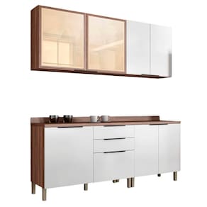 A cozinha completa nesher donna tem design contemporâneo, robusto e é muito pratica. Disponível em módulos, permite composições variadas, conforme o gosto do consumidor. Projetada para proporcionar praticidade e funcionalidade no uso diário, produzida com matérias prima de primeira linha e ferragens de última geração. Diferenciais únicos: grandes portas e gavetas. Puxadores em perfil de alumínio grafite. Dobradiça inteligente com fechamento anti impacto. Corrediça telescópica abertura integral: robusta e com três estágios, esta corrediça é ideal para o uso diário, facilitando o acesso aos utensílios. Ergonômico gavetão com laterais altas para armazenagem de utensílios e mantimentos. Armário aéreo com moderna e bonita porta de vidro reflecta. Acabamento da Prateleira: Impressão Escala de Brilho da Prateleira: Semi-Brilho Acabamento da Gaveta: Impressão Escala de Brilho da Gaveta: Brilhante Acabamento da Porta: Impressão Escala de Brilho da Porta: Brilhante Material do Puxador da Porta: Alumínio Acabamento: Impressão Acabamento dos Pés: Pintura Acompanha Tampo: Sim Altura: 221 cm Altura dos Pés: 16 cm Ambiente: Cozinha Complexidade da Montagem: Média: pode ser montado por mais de uma pessoa e/ou necessite de maior conhecimento para montagem Cr: Branco/Madeirado Cr: Branco/Madeirado Cr Interna: Madeirado Cr Predominante: Branco Escala de Brilho: Brilhante Estilo: Contemporâneo Gaveta com Chave: Não Itens Inclusos: 01 cozinha compacta Largura: 200 cm Linha ou Coleção: Donna Material da Gaveta: MDP Material da Porta: MDP Material da Prateleira: MDP Material do Fundo: Chapa de fibra Material do Tampo: MDP Material dos Pés: Polipropileno Material Principal: MDP Medida de cada item (A x L x P): 01 armário 02 pt 800 - 72cm x 80cm x 28,5cm / 01 armário 02 pt de vidro 1200 - 72cm x 120cm x 28,5cm / 01 balcão 01 pt 03 gav 1200 - 93cm x 120cm x 46cm / 01 balcão 02 pt 800 - 93cm x 80cm x 46cm Necessita Montagem: Sim O Balcão Acompanha Pia: Não Pés Reguláveis: Sim Peso: 122,7 kg Peso Máximo por Gaveta: 5 kg Peso Máximo por Prateleira: 15 kg Possui Gavetas: 03 Possui Pés: 09 Possui Portas: 07 Possui Prateleiras: 10 Possui recorte para Cooktop: Não Possui Rodízio: Não Profundidade: 46 cm : 04 : 04 Recomendações de Uso, Manutenção e Limpeza: Pano levemente umedecido e na sequencia pano seco. Sapatas Niveladoras: Sim Sistema de Montagem: Parafusos, Cavilhas e Minifix Suporta até (kg): 165 kg Tamanho: Tamanho Indicado do Tampo ou Pia: Nao Tipo de Corrediça da Gaveta: Metálica Telescópica Tipo de Dobradiça da Porta: Metálica : Bater Tipo de Puxador da Gaveta: Externo Tipo de Puxador da Porta: Externo