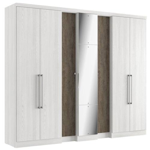 Já imaginou um móvel perfeito para deixar tudo organizado em seu quarto? Com o Roupeiro Selecto, agora na versão Glass você não terá mais preocupações com a bagunça! Produzido com estrutura e portas em MDP, ele possui 2 colunas de prateleiras e 4 gavetas para acomodar as suas roupas, calçados e acessórios. Além de 03 cabideiros e um ótimo espaço no maleiro. Seu lindo modelo com o acabamento Teka Sensitive, acompanhado do incrível BP Madeira Demolição proporciona uma decoração clássica e leve ao ambiente. Tudo isso com o toque final dos puxadores longos em alumínio e de amplo espelho na porta central. Características Técnicas: Número de Portas: 7 portas de 15mm Dobradiças: metálicas Número de gavetas: 4 gavetas externas com sistema de corrediças metálicas Prateleiras: 5 prateleiras removíveis e 10 tampos fixos Puxadores: 4 puxadores de 512mm em alumínio com ponteiras em PVC cromado, 2 puxadores ponto em ABS (Termoplástico de alta resistência com verniz protetor UV) e 01 puxador perfil de 266mm em alumínio. Pés: 12 sapatas deslizantes em PVC Sapateira: Espaço para sapatos embaixo das gavetas Cabideiros: 3 cabideiros em alumínio/metálico Maleiros: 5 maleiros embutidos Acessórios de Montagem: Sistema de montagem com minifix e parafusos Dimensões do Produto: Altura: 233 cm Largura: 266 cm Profundidade: 55 m Peso: 216 Kg Garantia do Fornecedor de: 6 meses
