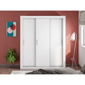 Produzido com material de altíssima qualidade e durabilidade, ele oferece estrutura em MDP. Nele você observará a presença de três portas de correr, quatro prateleiras, além de cabideiro e maleiro.