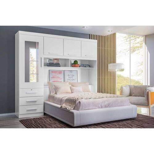 O Guarda-Roupa de casal Duster possui 4 portas de bater, sendo a porta lateral com chave e espelho incluso. Puxadores em Mdf revestidos. Estrutura em Mdp de 15 mmmm: caixa, portas e gavetas. 3 gavetas com corrediças telescópicas. Cabideiros em alumínio. Este produto é Multifuncional com montagem Inversa o que significa dizer que pode ser montado de forma invertida. Você pode fazer a montagem para o lado direito ou para o lado esquerdo e a escolha será feita no momento da montagem. Possui espaço interno para cama box casal com até 158 cm de largura e espaço interno útil do bau (A X L X P): 53 X 165 X 29 Cm