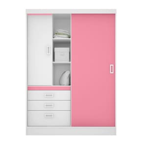 Mas não é só isso! Esse incrível móvel tem Coloração Flex, ou seja, você pode escolher montar o guarda-roupa branco com rosa ou todo branco. Não é demais?!