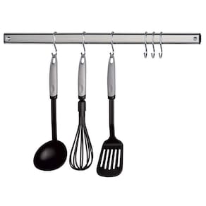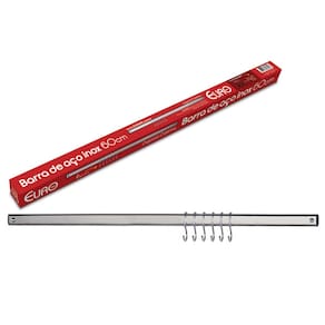 Com a barra de Aço Inox da Euro Home você poderá organizar tudo que você precisar em sua cozinha, ele é feita de material resistente e possui 6 ganchos para você pendurar colheres, escumadeiras, pegadores, conchas, pano de pratos e tudo que a sua imaginação permitir.
