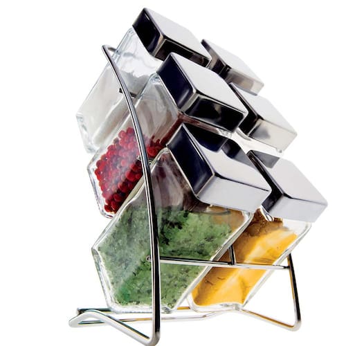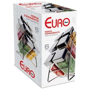 Porta-Condimentos Euro Home Square SSG-6 c/ 6 Peças e Suporte