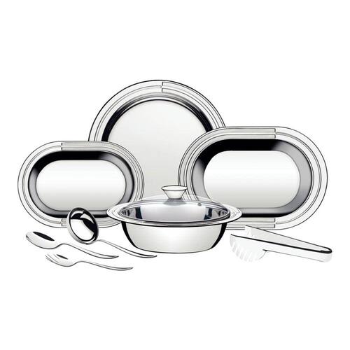 Por que o Jogo Inox Para Servir 8 Peças Ciclo?Sua mesa vai ficar muito mais fancy e elegante com o Jogo Inox Para Servir 8 Peças Ciclo. Perfeito para servir os mais saborosos e variados pratos. Prove que você pode ser um excelente anfitrião, além de um mestre na cozinha. ; )