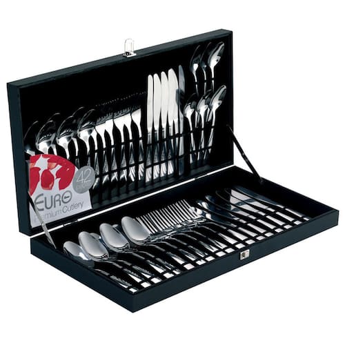 O faqueiro com 42 peças da Euro é próprio para o uso diário, combinando com ambiente tanto formal quanto casual. É feito em aço inox, altamente durável, o que mantém as características originais, preservando a beleza e higiene do material. E ainda vem com estojo de madeira para armazenar.