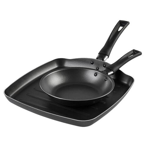 Agora sua cozinha vai ficar completa. Com o Conjunto Frigideira + Panela Grill Brinox 7000/303 você prepara receitas deliciosas com muito mais praticidade. Possui revestimento interno Pro-Flon, uma cobertura antiaderente composta por 5 camadas, que não gruda, limpa mais fácil e ajuda a cozinhar com menos óleo. Seus cabos de baquelite são antitérmicos e protege suas mãos durante o uso. O conjunto é composto por: 1 Frigideira 18 cm e 1 Grill 24 cm para facilitar ainda mais o preparo das suas refeições.