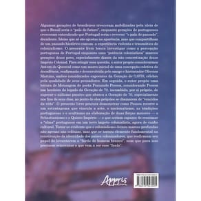 Algumas gerações de brasileiros cresceram mobilizadas pela ideia de que o Brasil seria o “país do futuro”, enquanto gerações de portugueses cresceram entendendo que Portugal seria o reverso: “o país do passado”, decadente. Ideias que só são opostas na aparência, mas que compartilham de um passado histórico comum: a experiência violenta e traumática do colonialismo. O presente livro busca investigar como a percepção portuguesa de Portugal enquanto uma “potência colonialista” marcou gerações desse povo, especialmente diante da não concretização desse Império Colonial. Para atingir essa questão, o autor propõe considerarmos Antero de Quental como um marco inicial de uma concepção coletiva de decadência, reafirmada e desenvolvida pelo amigo e historiador Oliveira Martins, ambos considerados expoentes da Geração de (18)70, célebre pela qualidade de seus pensadores. Em seguida, o autor propõe uma leitura de Mensagem do poeta Fernando Pessoa, considerando Pessoa um herdeiro do legado da Geração de 70, incumbido, por si próprio, de superar o niilismo passivo que abateu a Geração de 70, especialmente nos fins de seus dias, ao ponto de eles próprios se chamarem de “vencidos da vida”. O presente livro procura demonstrar como Pessoa recorre a um estratagema que vincula a arte, o nacionalismo, as tradições portuguesas e o ocultismo na elaboração de duas forças maiores — o Sebastianismo e o Quinto Império — e que seriam capazes de reanimar a “alma” portuguesa em um novo ímpeto colonialista, agora de cunho cultural. Torna-se evidente que o colonialismo deixou marcas profundas não apenas nas colônias, mas que se tornou elemento fundamental na constituição da identidade dos países colonizadores, que reafirmam seu papel de levantarem o “fardo do homem branco”, nem que para isso precisem reinventar o que vem a ser esse “fardo”.