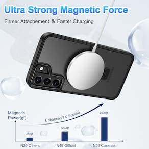 Capa?Suporte magnético invisível?Feito de alumínio de nível aeroespacial, o suporte é prático e multifuncional. Pode ser ajustada entre 40° e 120° para uma experiência de visualização estável e sem usar as mãos, e funciona como um suporte de anel para maior conveniência. Com estilo de vida N+1, pode ser utilizado para assistir TV, trabalhar em reuniões ou conversar por vídeo. - ?Modelos compatíveis? Esta capa fosca translúcida é compatível apenas com Samsung Galaxy S22, não compatível com nenhum outro modelo de telefone. - ?Compatível com acessórios MagSafe e carregamento sem fio?Esta capa de telefone com um anel magnético integrado que se alinha perfeitamente com os carregadores MagSafe e outros carregadores com certificação Qi, oferece uma forte experiência de fixação e carregamento sem fio mais rápido. Compatível com todos os acessórios Magsafe, como um carregador magnético, suporte magnético para carro, carteira magnética, carregador magnético, etc. Carregue do seu jeito. - ?Design fosco translúcido?Parte traseira fosca translúcida avançada, restaurando a textura metálica e exibindo o logotipo do seu telefone fracamente, evita que a capa fique suja ou amarele, com uma sensação refrescante e suave. A textura fosca oferece uma melhor aderência. - ?Material premium?Feito de moldura de TPU flexível e parte traseira de policarbonato antiarranhões protege seu telefone contra choques e arranhões sem adicionar volume. - ?Suporte magnético invisível?Feito de alumínio de nível aeroespacial, o suporte é prático e multifuncional. Pode ser ajustada entre 40° e 120° para uma experiência de visualização estável e sem usar as mãos, e funciona como um suporte de anel para maior conveniência. Com estilo de vida N+1, pode ser utilizado para assistir TV, trabalhar em reuniões ou conversar por vídeo.