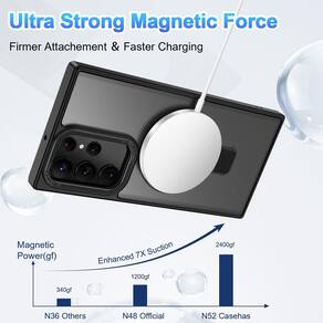 Capa?Suporte magnético invisível?Feito de alumínio de nível aeroespacial, o suporte é prático e multifuncional. Pode ser ajustada entre 40° e 120° para uma experiência de visualização estável e sem usar as mãos, e funciona como um suporte de anel para maior conveniência. Com estilo de vida N+1, pode ser utilizado para assistir TV, trabalhar em reuniões ou conversar por vídeo. - ?Modelos compatíveis? Esta capa fosca translúcida é compatível apenas com Samsung Galaxy S22 Ultra, não compatível com nenhum outro modelo de telefone. - ?Compatível com acessórios MagSafe e carregamento sem fio?Esta capa de telefone com um anel magnético integrado que se alinha perfeitamente com os carregadores MagSafe e outros carregadores com certificação Qi, oferece uma forte experiência de fixação e carregamento sem fio mais rápido. Compatível com todos os acessórios Magsafe, como um carregador magnético, suporte magnético para carro, carteira magnética, carregador magnético, etc. Carregue do seu jeito. - ?Design fosco translúcido?Parte traseira fosca translúcida avançada, restaurando a textura metálica e exibindo o logotipo do seu telefone fracamente, evita que a capa fique suja ou amarele, com uma sensação refrescante e suave. A textura fosca oferece uma melhor aderência. - ?Material premium?Feito de moldura de TPU flexível e parte traseira de policarbonato antiarranhões protege seu telefone contra choques e arranhões sem adicionar volume. - ?Suporte magnético invisível?Feito de alumínio de nível aeroespacial, o suporte é prático e multifuncional. Pode ser ajustada entre 40° e 120° para uma experiência de visualização estável e sem usar as mãos, e funciona como um suporte de anel para maior conveniência. Com estilo de vida N+1, pode ser utilizado para assistir TV, trabalhar em reuniões ou conversar por vídeo.
