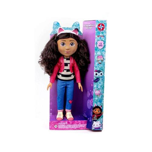 A Casa Mágica Da Gabby Boneca Gabby Estrela Gabby é uma garota corajosa, divertida e muito inteligente Ela ama viver novas aventuras e brincar com seus gatinhos em sua Casa Mágica. Com cerca de 39 cm de altura, cabeça em vinil e lindos cabelos pretos enrolados enraizados, ela está vestida com a roupinha característica da personagem no desenho e também usa a tiara de gatinho A boneca é um produto recomendado para crianças a partir dos 3 anos. Homologação Inmetro: IP-BRI-9333/2018-10 Ean: 7896027561876