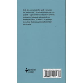 Em um mundo saturado de informações fragmentadas, a narrativa está em crise. Com uma análise aguda e perspicaz, Han examina como a sociedade contemporânea está perdendo a capacidade de criar e apreciar narrativas significativas. Explorando os impactos desse fenômeno na cultura, na política e na tecnologia, ele revela os desafios e as consequências da era pós-narrativa.