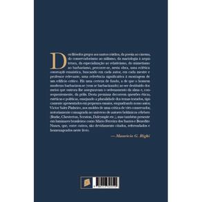 Dos filósofos gregos aos santos cristãos, da poesia ao cinema, do conservadorismo ao niilismo, da mariologia à arquitetura, da especialização ao relativismo, do mimetismo ao barbarismo, percorre-se nesta obra uma eclética conversação ensaística, buscando em cada autor, em cada mestre e professor relevante, uma referência significativa à montagem de um edifício crítico. Há uma certeza de fundo: o homem moderno barbarizou-se e vem se barbarizando ao ser destituído dos meios que outrora lhe asseguravam o ordenamento da alma e, consequentemente, da pólis. Desta premissa decorrem questões éticas, estéticas e políticas, ensejando a pluralidade dos temas tratados, tipicamente apresentados em pequenos ensaios, enquadrando Victor Sales Pinheiro nos moldes de uma crítica de viés conservador, notoriamente consagrada no universo de autores britânicos célebres (Burke, Chesterton, Scruton, Dalrymple etc.), mas também presente em luminares brasileiros como Mário Ferreira dos Santos e Benedito Nunes, que, entre outros, são devidamente citados, referendados e homenageados neste livro.