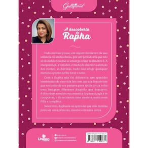 A adolescência da Rapha não foi fácil. Ela era diferente, tinha poucos amigos e, às vezes, tinha a impressão de que tudo e todos conspiravam contra ela. Até que um evento bombástico fez com que, pela primeira vez, Rapha conseguisse se enxergar como realmente era. Com ilustrações e uma surpresa pra lá de especial, este livro também vai ajudá-la a aprender o valor da amizade, da família e do autoconhecimento. Acredite, a descoberta de Rapha também pode ser uma grande descoberta para você!