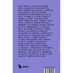 Neste ensaio, escrito seis meses após o início do genocídio israelense em Gaza, Andreas Malm discute o encontro, na Palestina, dos dois maiores problemas da humanidade, hoje: a guerra e a crise climática — uma história que, segundo o autor, não começou em 7 de outubro de 2023 (com os ataques da resistência palestina em território israelense), nem em 1967 (com a Guerra dos Seis Dias), nem em 1948 (com a Nakba e a fundação do Estado de Israel), mas em 1840, quando o maior navio a vapor (ou seja, movido à carvão) da marinha britânica enfrentou sua primeira campanha militar relevante, justamente bombardeando e destruindo a cidade de Akka, no litoral palestino, com enormes baixas civis. Também em 1840, na esteira do conflito (provocado para garantir mercado para os produtos têxteis vindos da Inglaterra e para frear a industrialização do Egito), os britânicos começaram a incentivar a colonização da Palestina por judeus, popularizando o falacioso termo “uma terra sem povo para um povo sem terra” e dando início à “febre sionista”, que na época era impulsionada principalmente por cristãos. Ou seja, o momento que iniciou a globalização da energia a vapor, por meio de seu uso na guerra, também foi o momento que concebeu o projeto sionista. A destruição da Palestina é a destruição do planeta é um livro instigante, fruto de longa e farta pesquisa documental, e essencial para expandir a compreensão tanto da Questão Palestina como do que Malm chama de “imperialismo fóssil”.