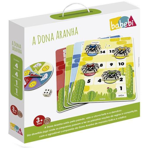A Dona Aranha subiu pela parede, veio a chuva forte e a derrubou. Um divertido jogo onde os pequenos passam a ter as primeiras noções de regras e de competição, com a agradável companhia da Dona Aranha de maneira lúdica e criativa. Este é um jogo de mesa para crianças que promove a interação e diversão, além de estimular o raciocínio, a obediência e respeito às regras.