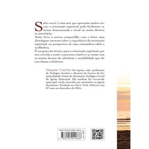 Saber ouvir é uma arte que apresenta muitos riscos: a orientação espiritual pode facilmente se tornar desencarnada e irreal ou muito diretiva se autoritária. Neste livro a autora compartilha com o leitor uma abordagem amorosa sobre a experiência da orientação espiritual, na perspectiva de uma orientadora sábia e acolhedora. É um guia não técnico para a orientação espiritual, que nos convida a sentir o processo criativo e a contar com as muitas facetas da sabedoria e sensibilidade que ele nos chama a desfrutar.
