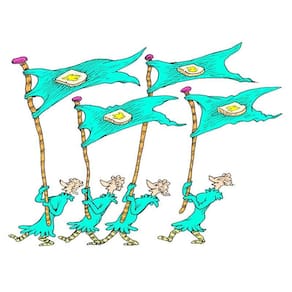 Os Azuizinhos e os Laranjinhos são dois povos muito parecidos, mas que se acham bem diferentes. Isso porque eles não concordam de jeito nenhum em uma coisa: como passar a manteiga no pão. Por causa dessa diferença, eles resolveram construir um muro entre suas terras, assim poderiam ficar separados de vez de quem não pensava igual a eles. E se algum inimigo se aproximasse… A guerra poderia começar a qualquer momento! Nessa história em versos inspirada na Guerra Fria, Dr. Seuss provoca reflexões sobre o convívio em sociedade e a aceitação do diferente. Com um final aberto, cabe ao leitor decidir como essa disputa vai acabar.